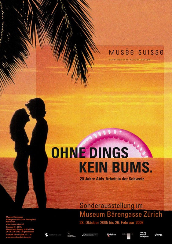 Ohne Dings kein Bums. 20 Jahre Aids-Hilfe in der Schweiz. Ausstellungs- und Buchprojekt im Museum Bärengasse Zürich, dem Kantonsmuseum Baselland Liestal, dem Kornhausforum Bern und weiteren Orten (2005/06).